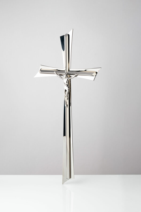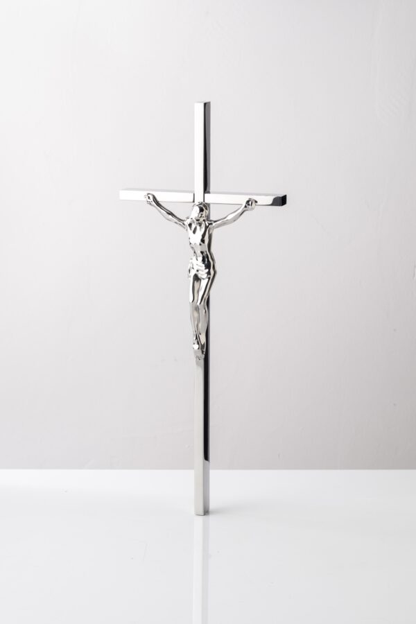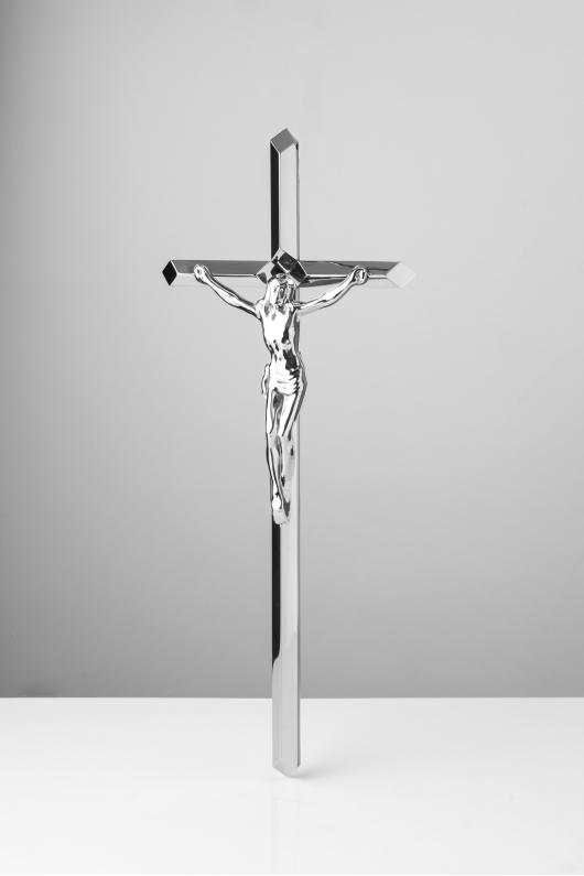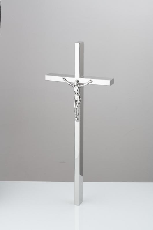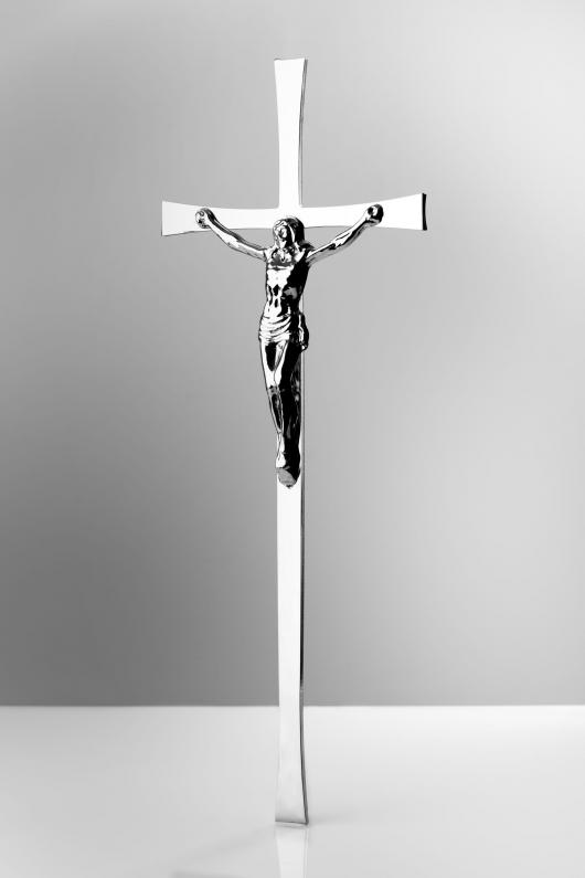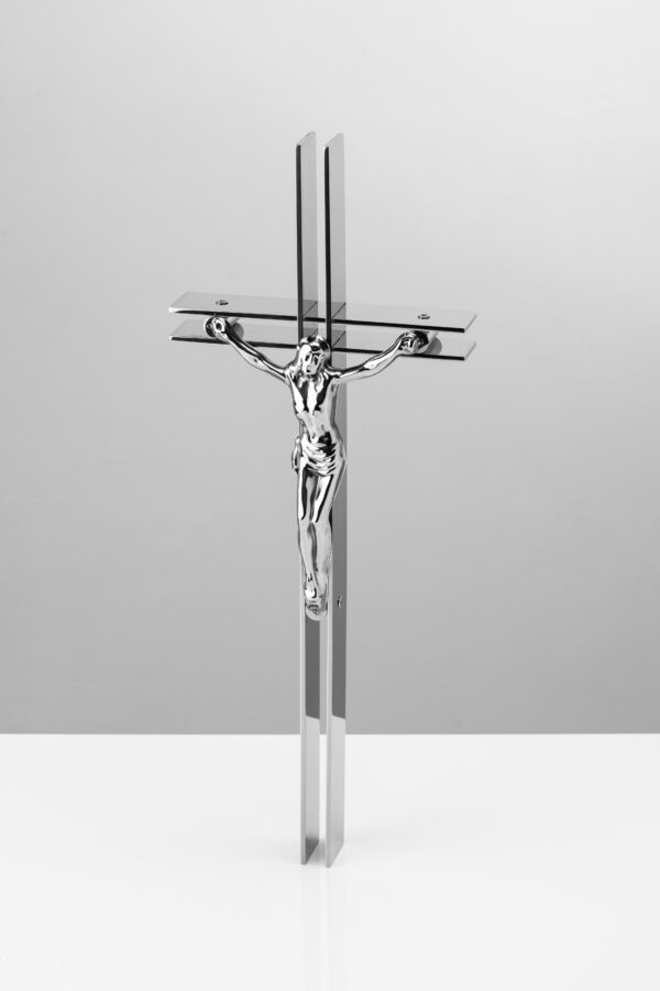 Krzyż z podwójnego pręta fi 8 mm z końcami ściętymi na ukos oraz Pasyjką wypukłą.
