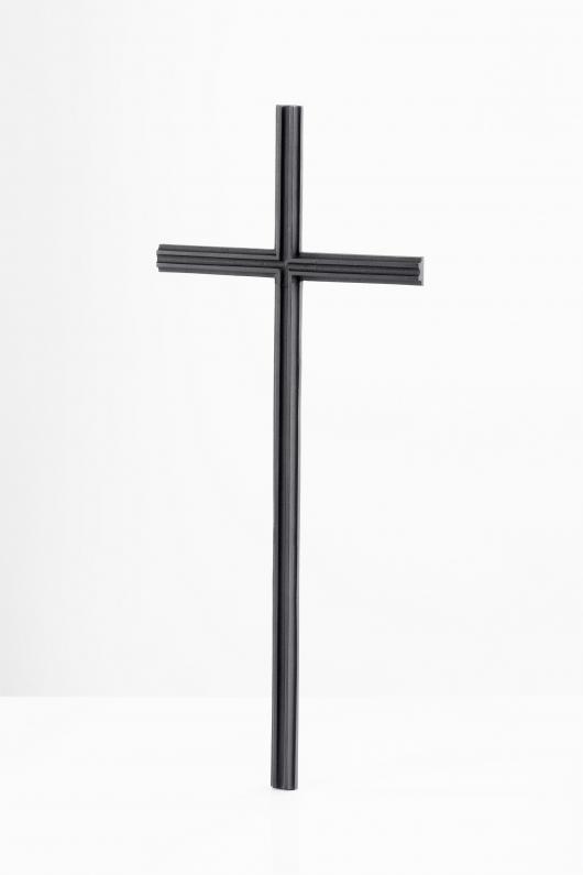 Krzyż prosty z brązu oksydowanego na czarno z rowkiem okrągłym.
