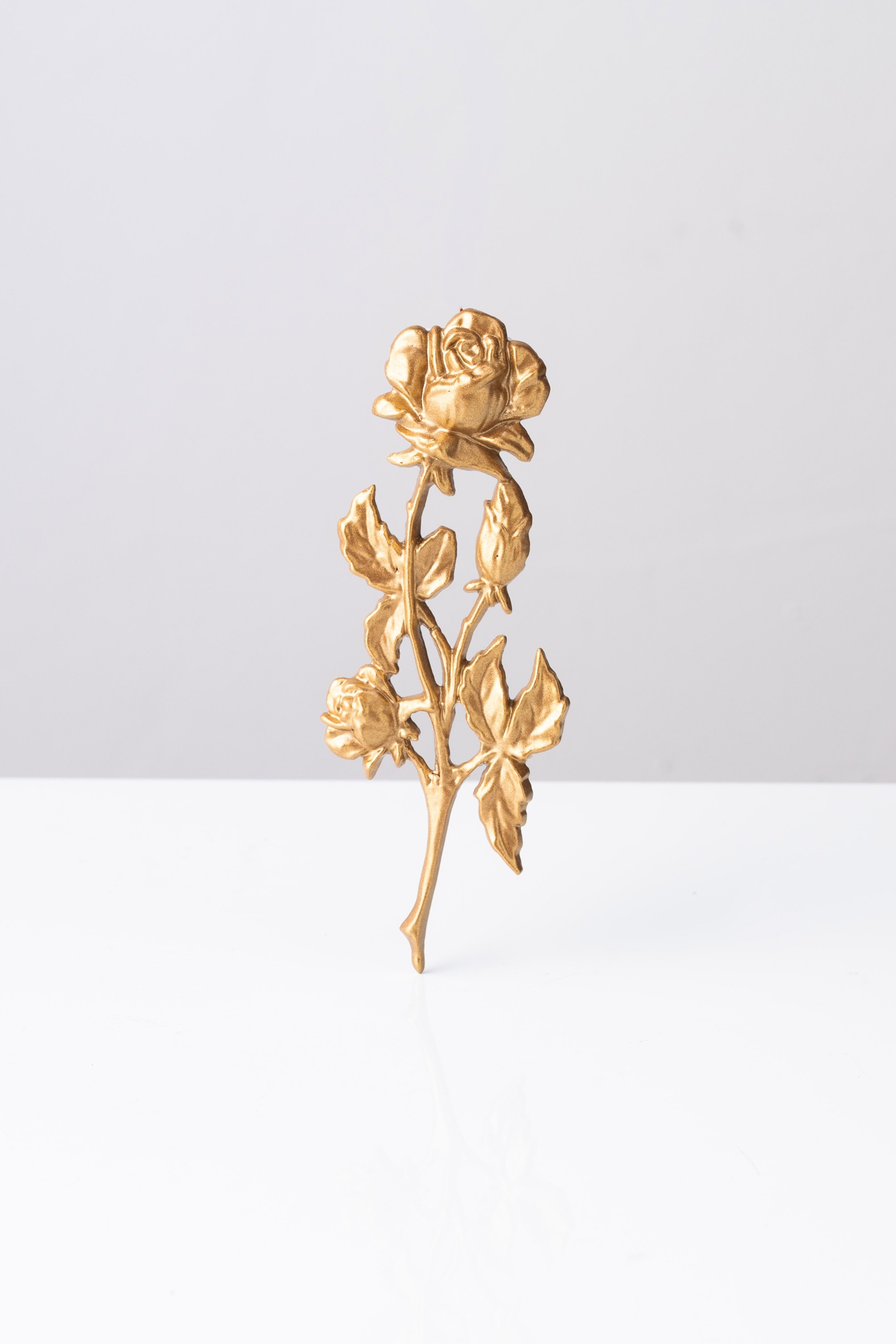Róża z trzema pąkami, z aluminium w formie wypukłego ornamentu w kolorze złotym.
