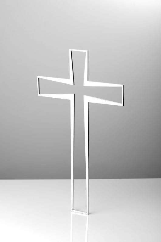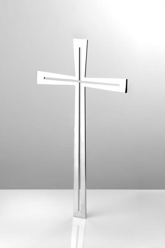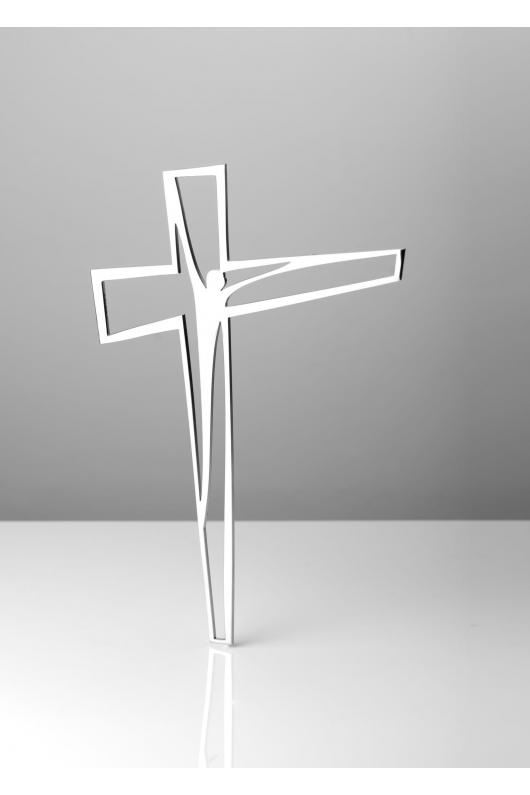Krzyż wąski z płaskiej blachy grub. 3 mm z wyciętym rowkiem, końce z nacięciami.