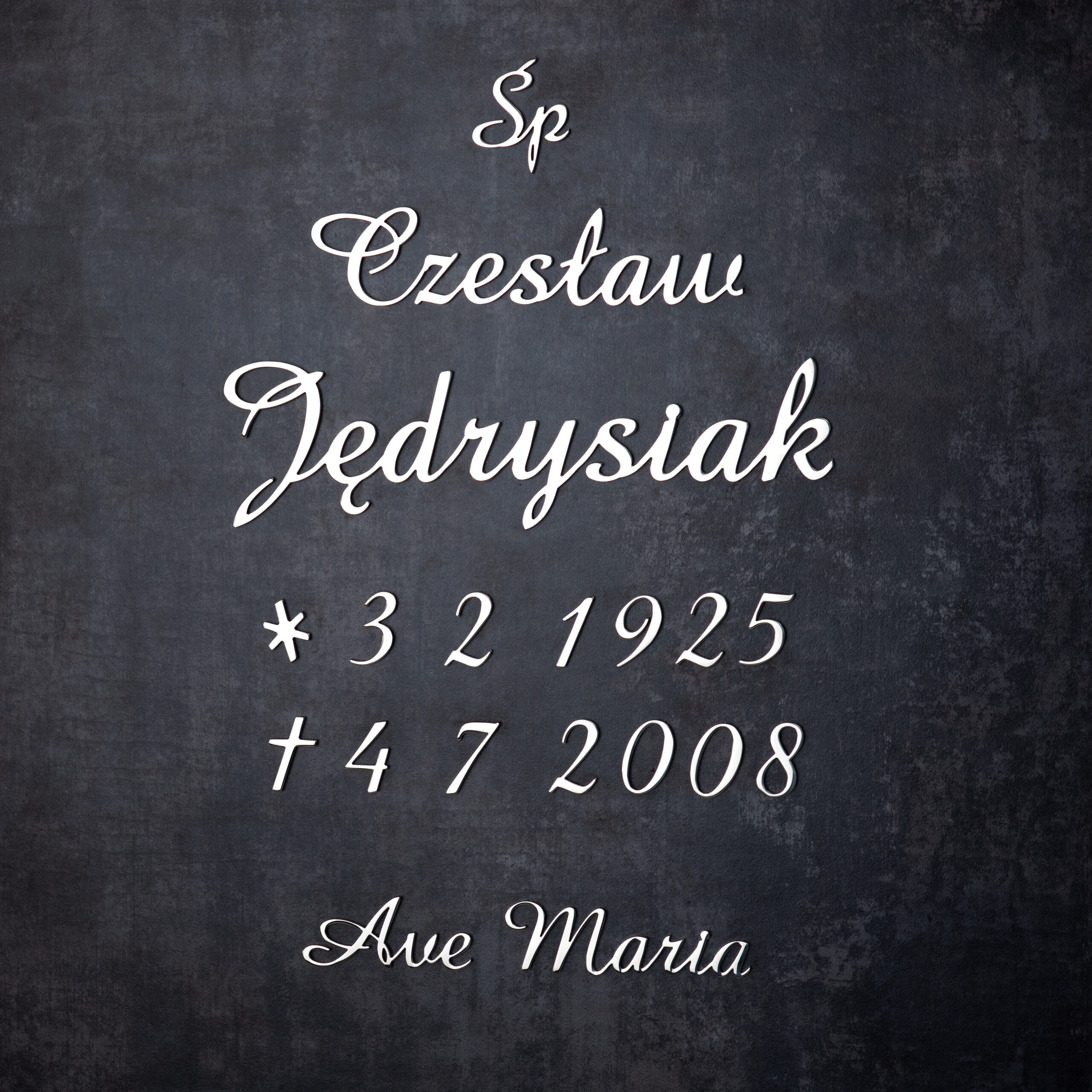 Krój liter Amazon charakteryzuje się odręcznym wzorem pisma. Na nagrobku wygląda bardzo subtelnie i elegancko. Litery wykonane są z kwasoodpornej stali nierdzewnej, która jest odporna na wilgoć, rdzę oraz działanie wysokich i niskich temperatur.