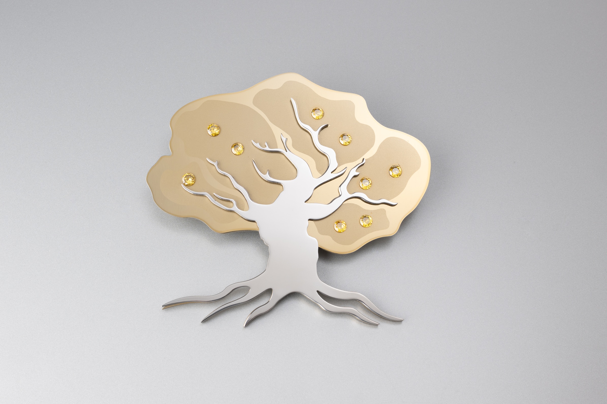 Drzewko w kilku wykończeniach jednocześnie – srebrny poler , złoto matowe i złoto błyszczące.