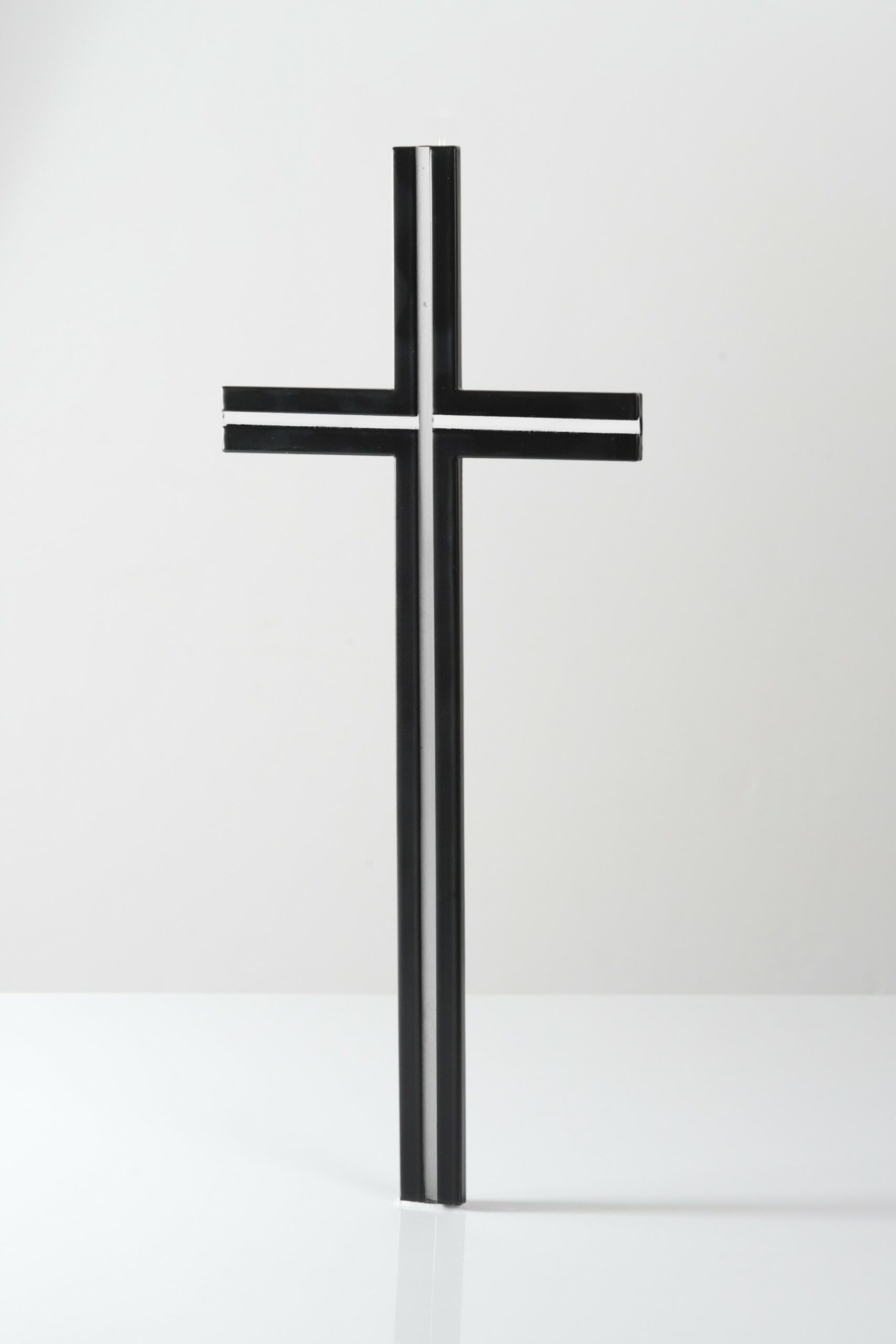 Krzyż nagrobny leżący nr KL11, wykonany z wysokiej jakości stali nierdzewnej. Produkt składa się z dwóch warstw – bazy matowej i nakładek polerowanych ( rowek matowy ).
