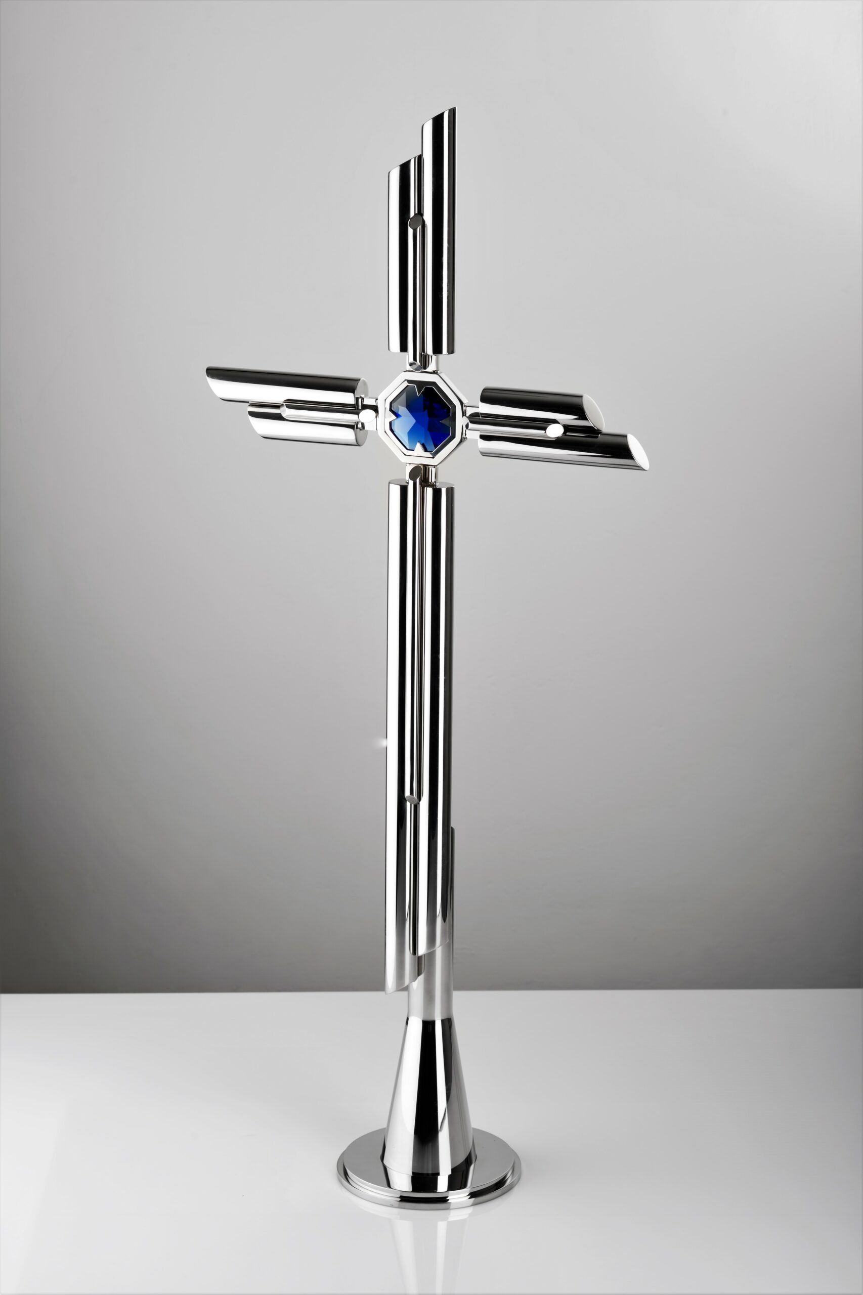 Elegancki, polerowany krzyż stojący wykonany z dwóch rurek ⌀ 25 mm i pręta.