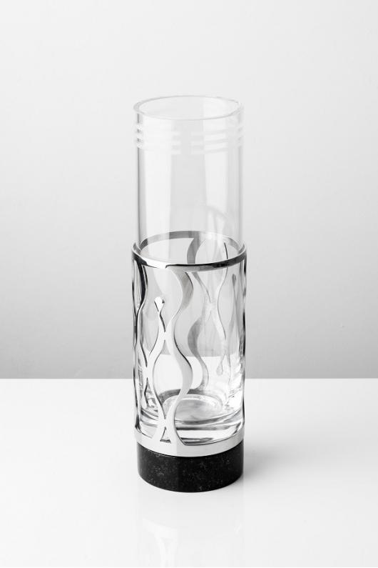 Wazon ze stali nierdzewnej z podstawą z czarnego granitu.