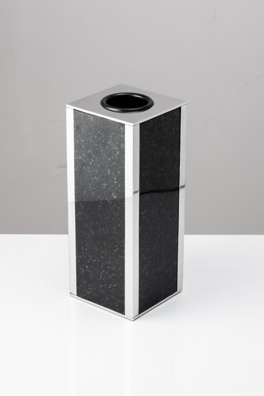 Wazon kwadratowy z granitu czarnego z wkomponowanymi płaskownikami na rogach