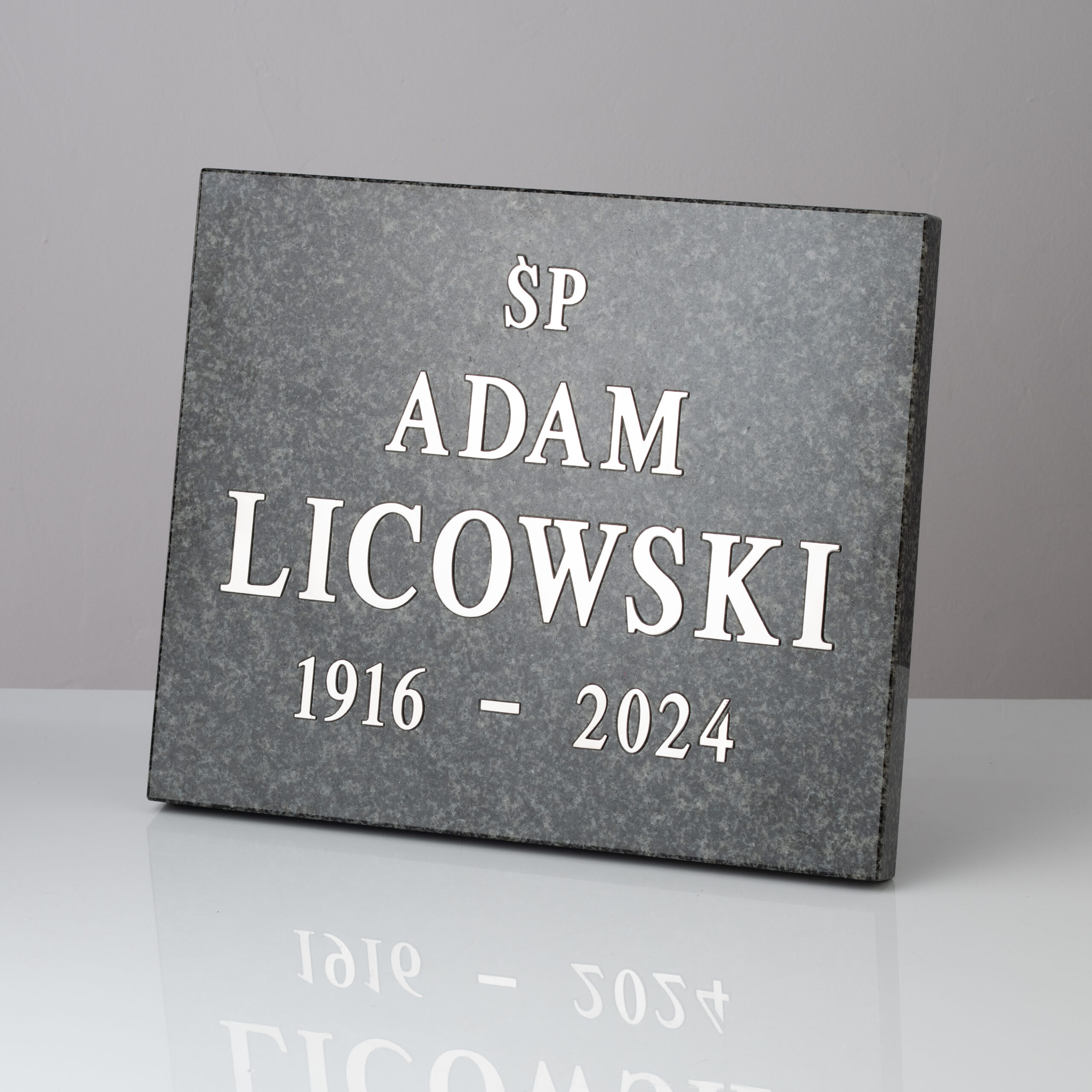 Inne wielkości, grubości materiału oraz wykonanie innych krojów czcionek w wersji zlicowanej realizujemy na indywidualne zamówienie. W celu uzyskania szczegółowych informacji zapraszamy do kontaktu z Obsługą Klienta pod numerem 32 422 00 10 lub mailowo sklep@akcesorianagrobkowe.pl