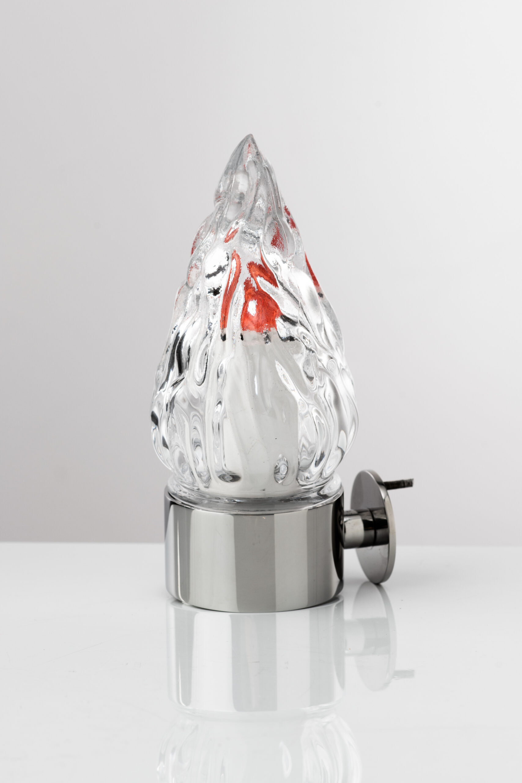 Lampion mały z kloszem szklanym i świecą elektryczną.